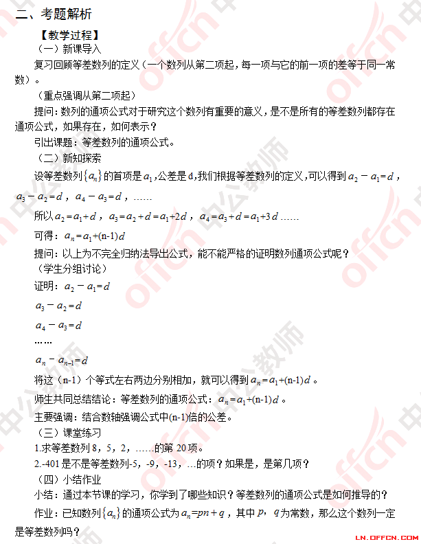 高中数学《等差数列的通项公式》